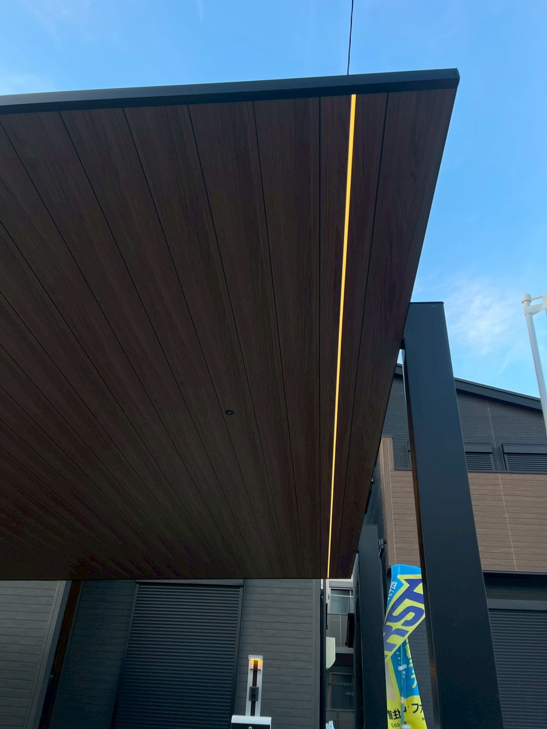 カーポートSCの設置、シームレスラインライト導入、表札取付