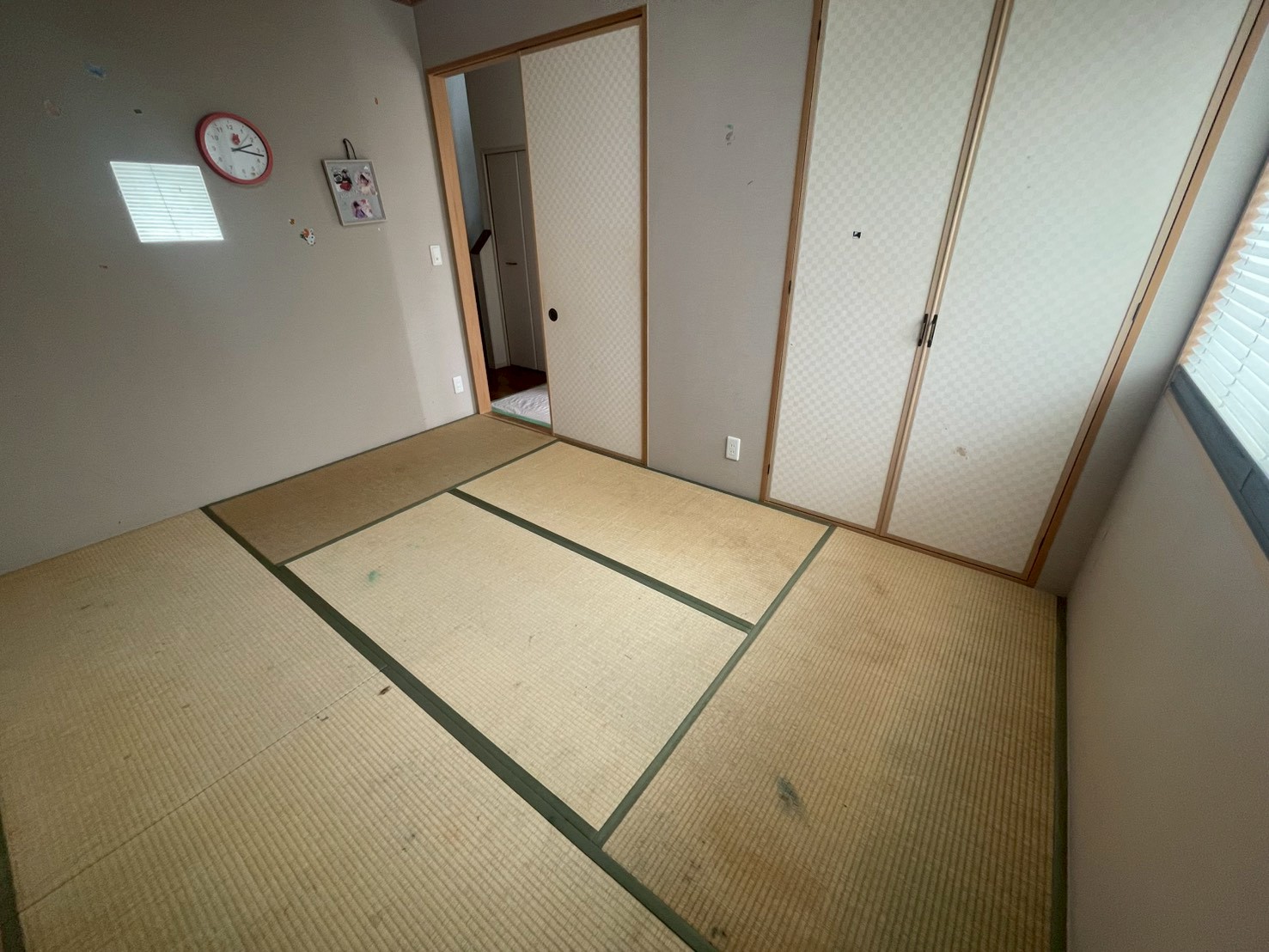 | ■お客様のご要望 ・畳のイグサが嫌で、床を変更したい。 ・お嬢様のお部屋を造りたい ・壁紙や襖の交換も悩んでいる ■施工内容詳細 とにかく早急にイグサからのストレス解放をとのことで、 取り急ぎフローリング工事をさせていただきました。 床の畳を撤去し、新たにフローリングを張らせていただきました。 ヘリも解消され、家財なども配置しやすくなったかと思います(^^♪ 工事が終わってご確認いただいた直後に、床を綺麗にしたのでやはり壁紙も扉も変えたいかも!?とのこと! 改めてすぐ採寸、当日中にご提案などさせていただきました(^^) ■商品仕様 フローリング材 DAKEN フォレスティアJM YF-ーYC <クリアオーカー色> 巾木 DAIKEN 薄型巾木 <ホワイト> ■和室改修メリット ・メンテナンス性向上 ・水ぶき可能 ・い草のわずらわしさからの解消 ・家具配置によるたたみの凹み・跡の心配解消 ・畳縁が無い為フラットに使用可能 和室から洋室への変更などご検討をされているお客様は是非、ご連絡お待ちしております(*'ω'*) | |||||
