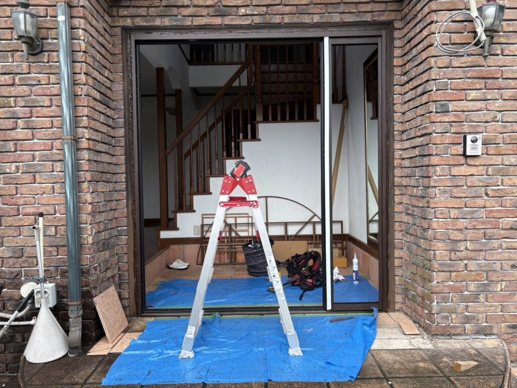 今回ご紹介している工事は、カバー工法と言って既存のドア枠の上に新しい枠をかぶせて、ドアを交換するリフォーム方法です。壁や床を壊す必要が無いため、工事期間が短く、費用も抑えられるといったメリットがあります。